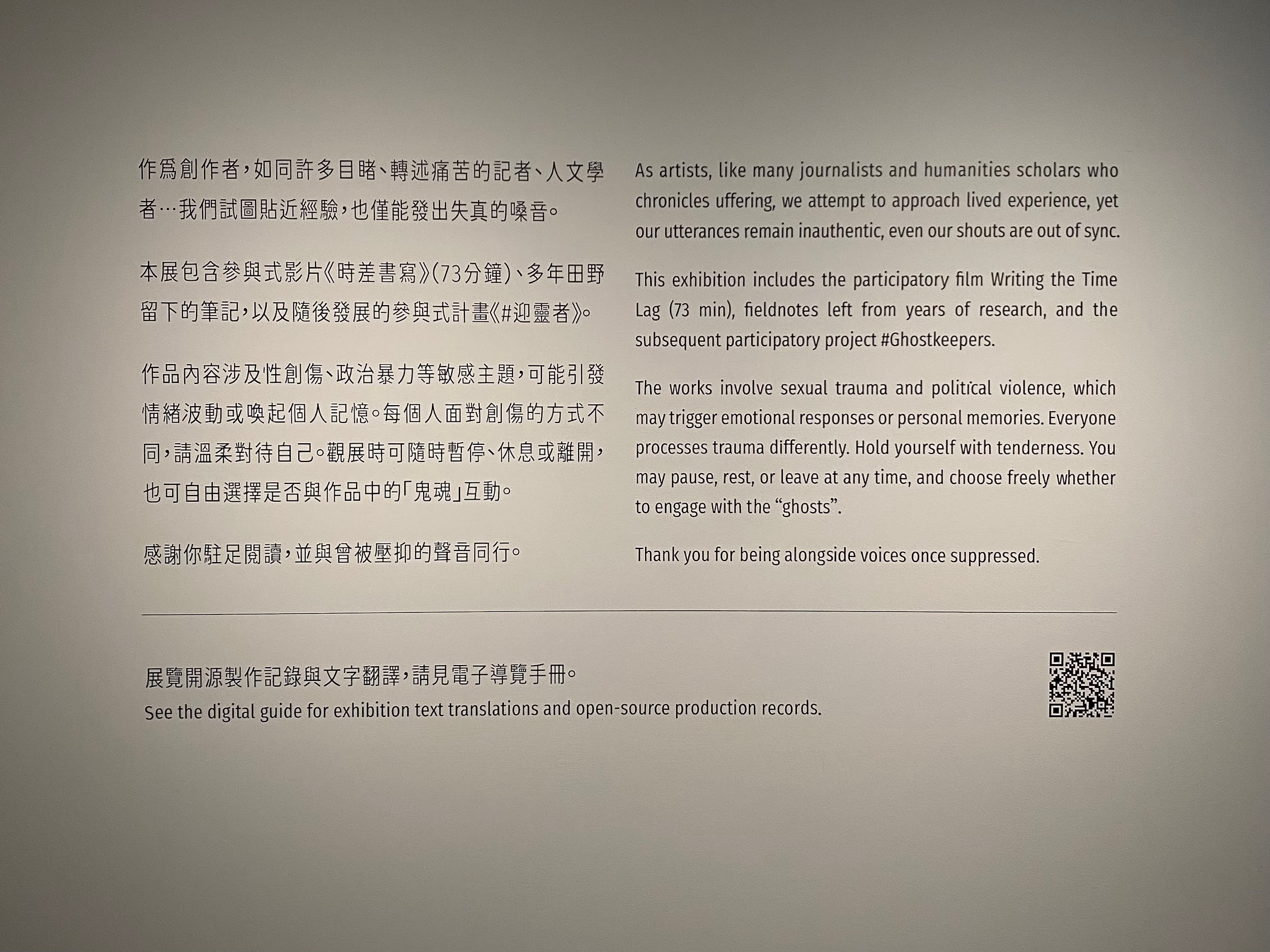 華岡融媒體記者/吳珮瑀報導 以創傷、記憶與歷史為主題的展覽《力求失真的嗓音》近日於台北市立美術館3A(2)展區登場。策展人李紫彤表示,這次展覽關注的,是那些「無法被完整說出的真實」。她提到,《時差書寫》的創作源於她在社會運動與田野中的親身經驗,「或許這個展覽,我試圖給一個夢『後』 ...